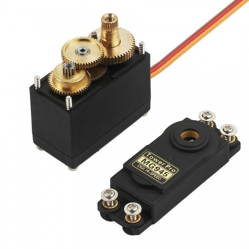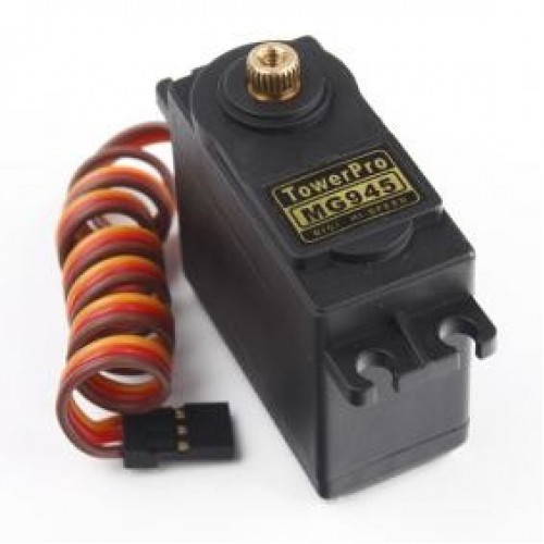 MG945 Servo Motor - Metal Dişli - Tower Pro, Futaba kumandalarla uyumlu, RC projelerde kullanılabilecek güçlü bir servo motordur. PWM sinyalleriyle kontrol edilir. Motorun dişli kutusu metaldir. MG945 Servo Motor - Metal Dişli - Tower Pro paketi içerisine değiştirilebilir servo başlıkları dahildir.